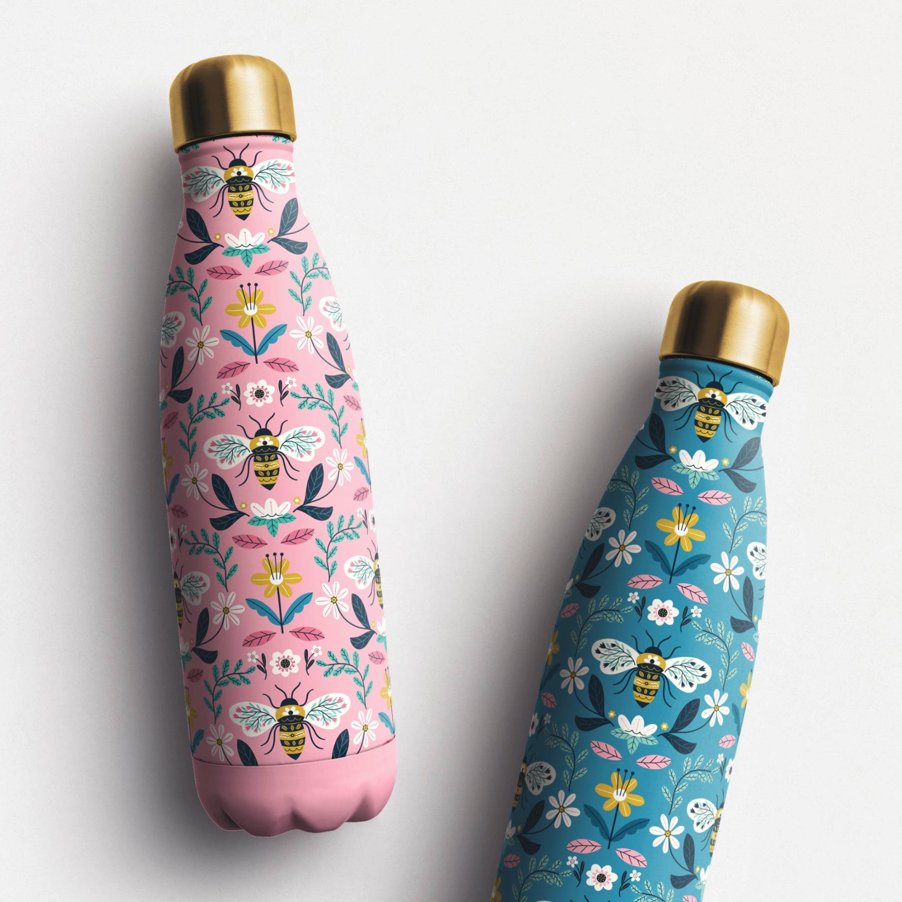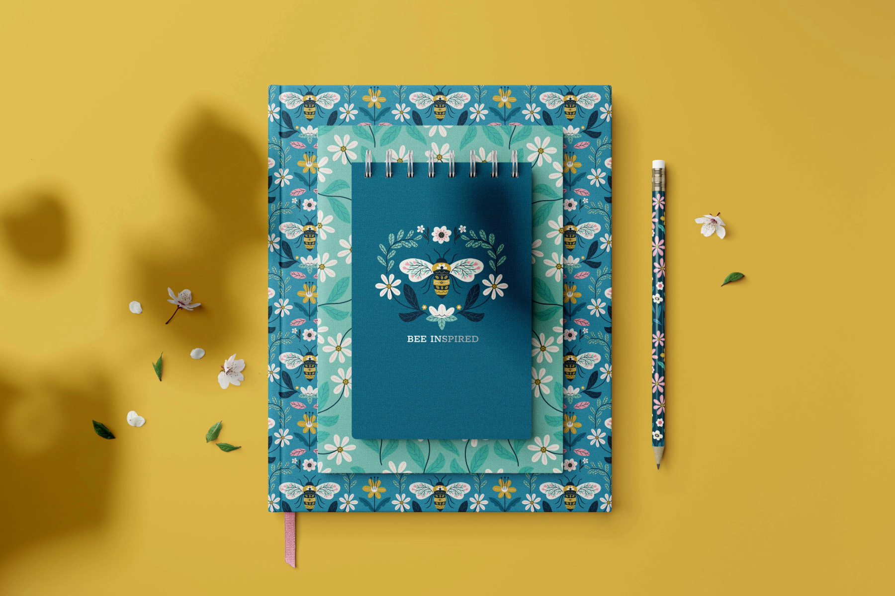 Fully customisable and available for licensing, these bee-inspired designs also work beautifully as repeat surface patterns, making them ideal for stationery, textiles, home décor, and more.