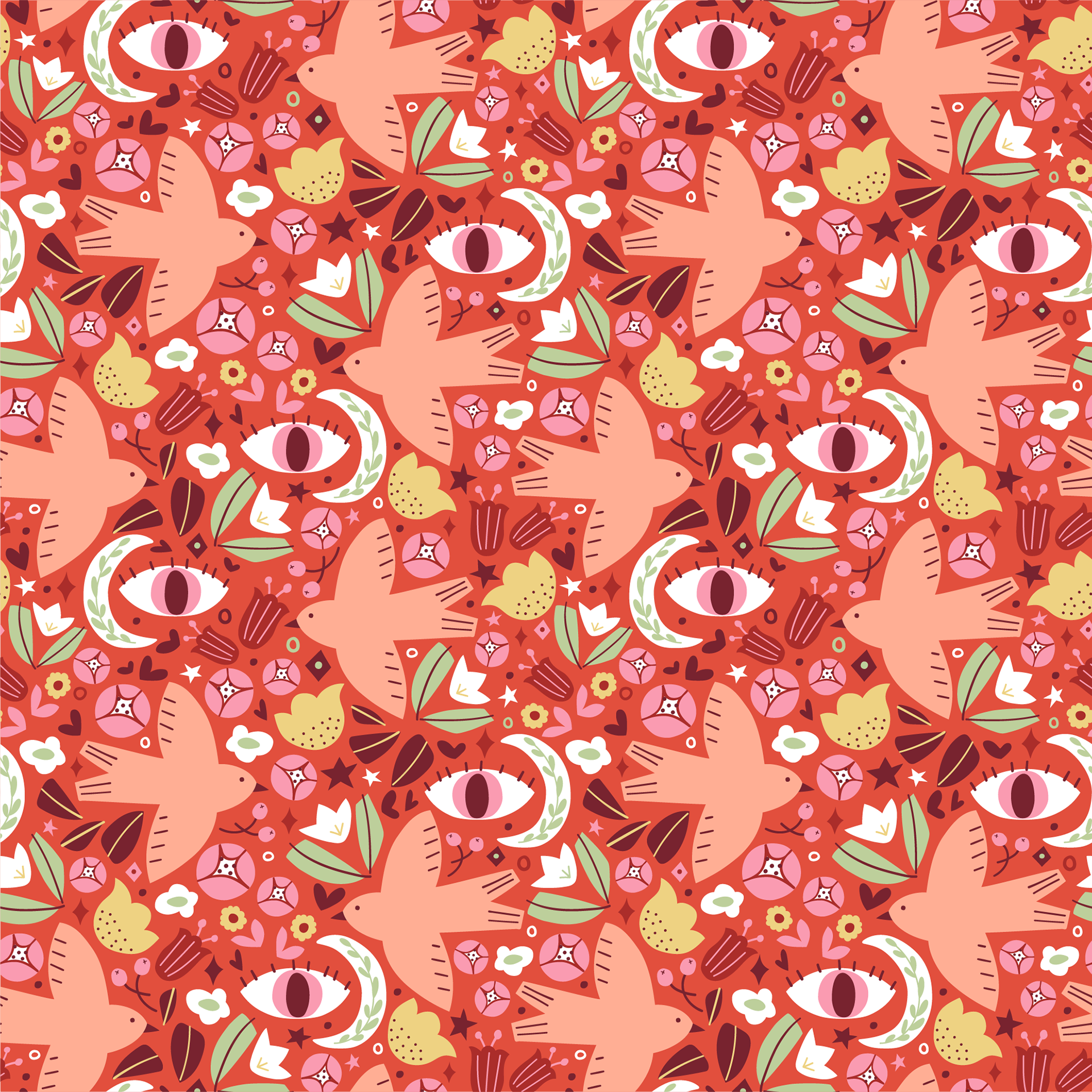 Vibrant folk style pattern collaboration with CORAL.