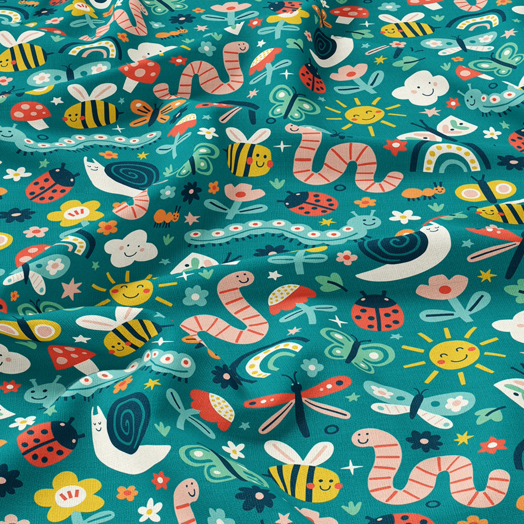 Designed for babies, toddlers, and young children, this collection celebrates the wonder of nature with ladybugs, buzzing bees, fluttering butterflies, friendly snails, and cheerful meadow blooms - all created in a retro-inspired palette that feels both timeless and fun.