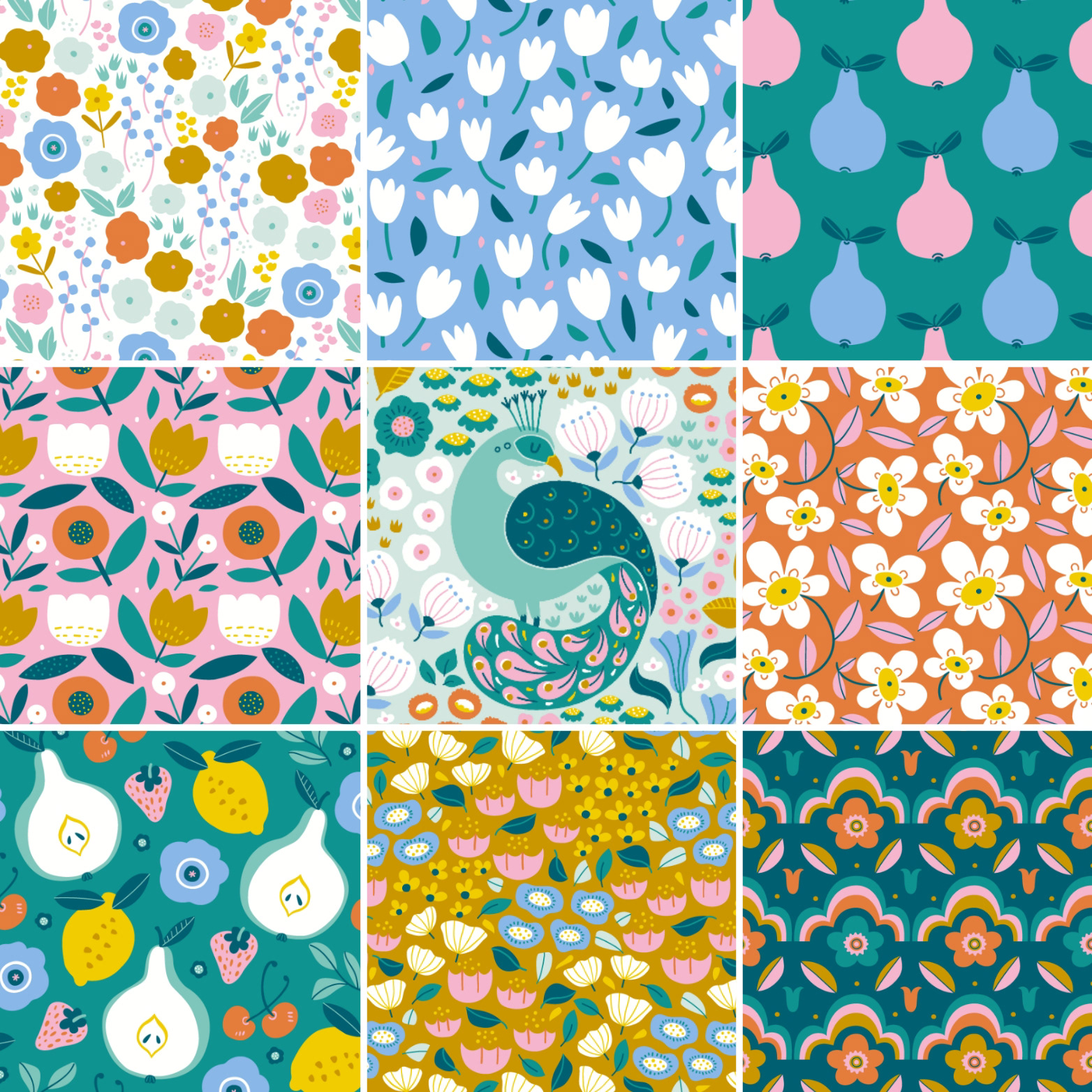 A collection of retro style pattern designs for a variety of home decor and fabrics. Summer Loving is available from my Spoonflower store.