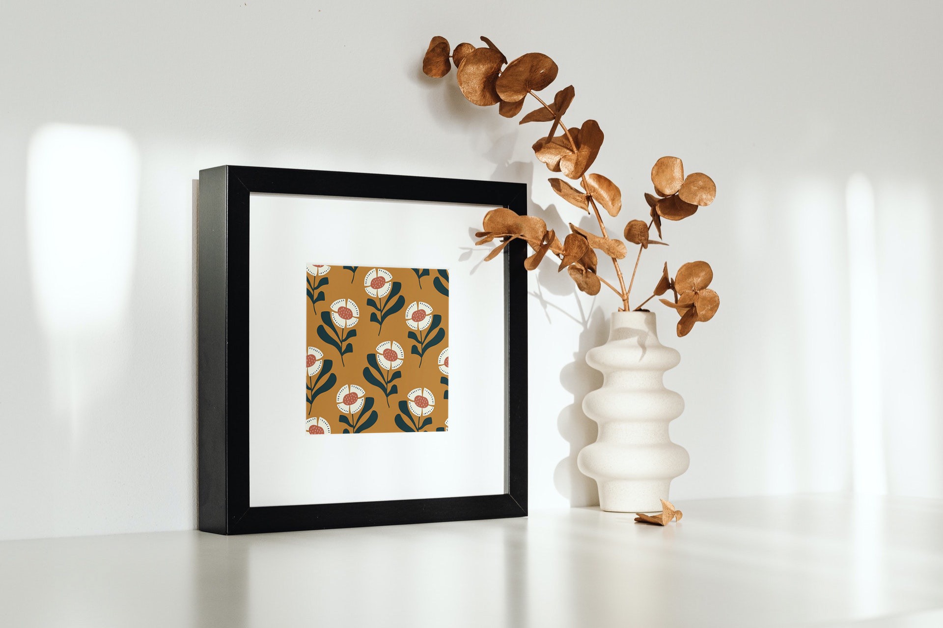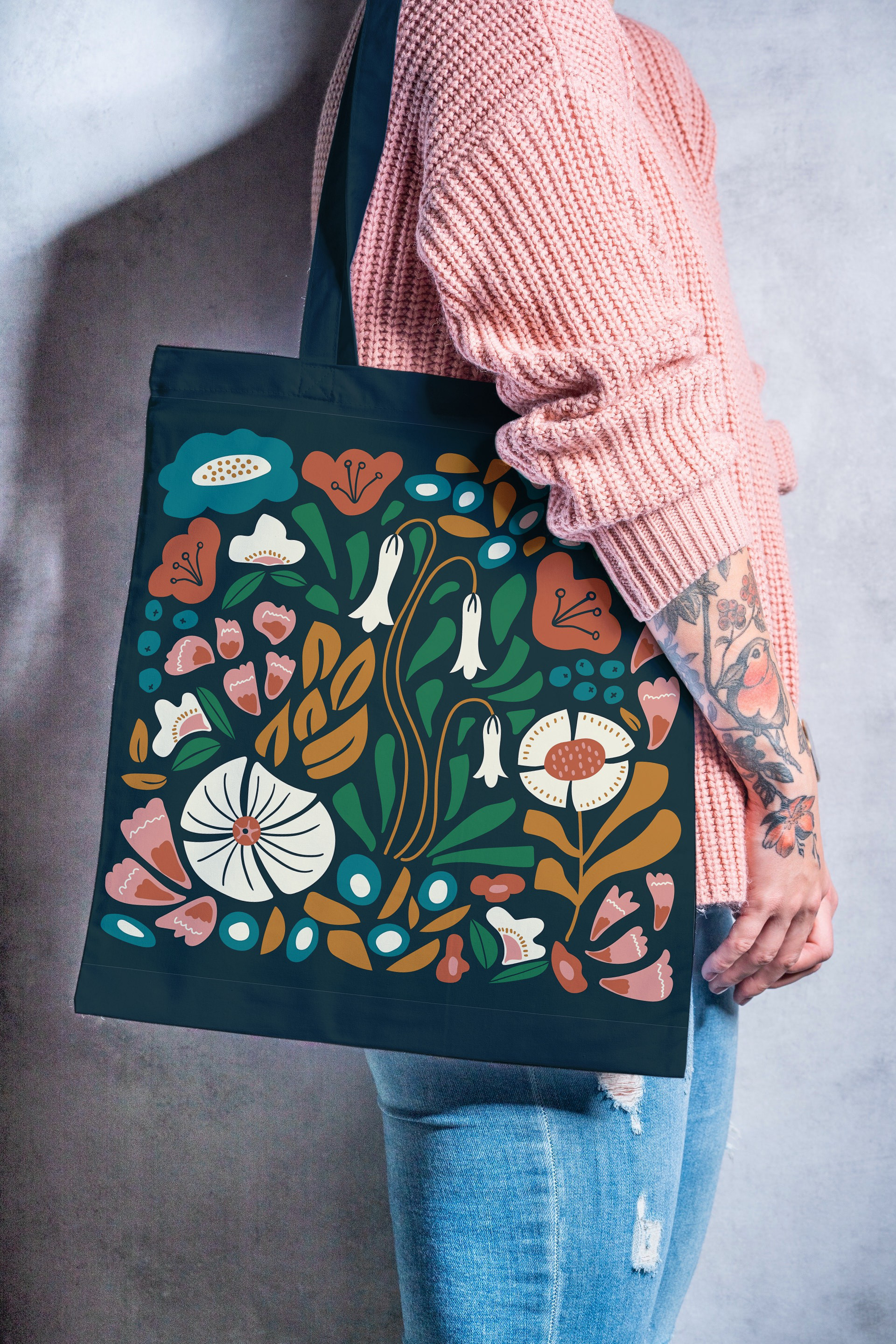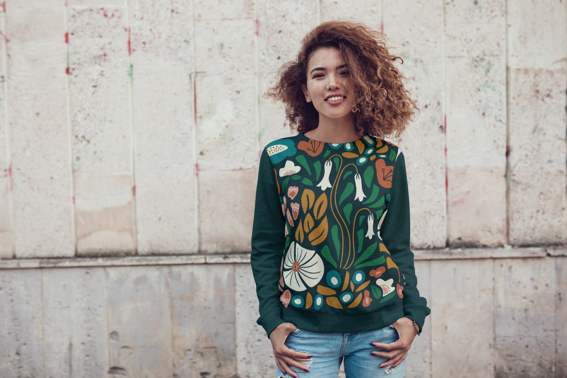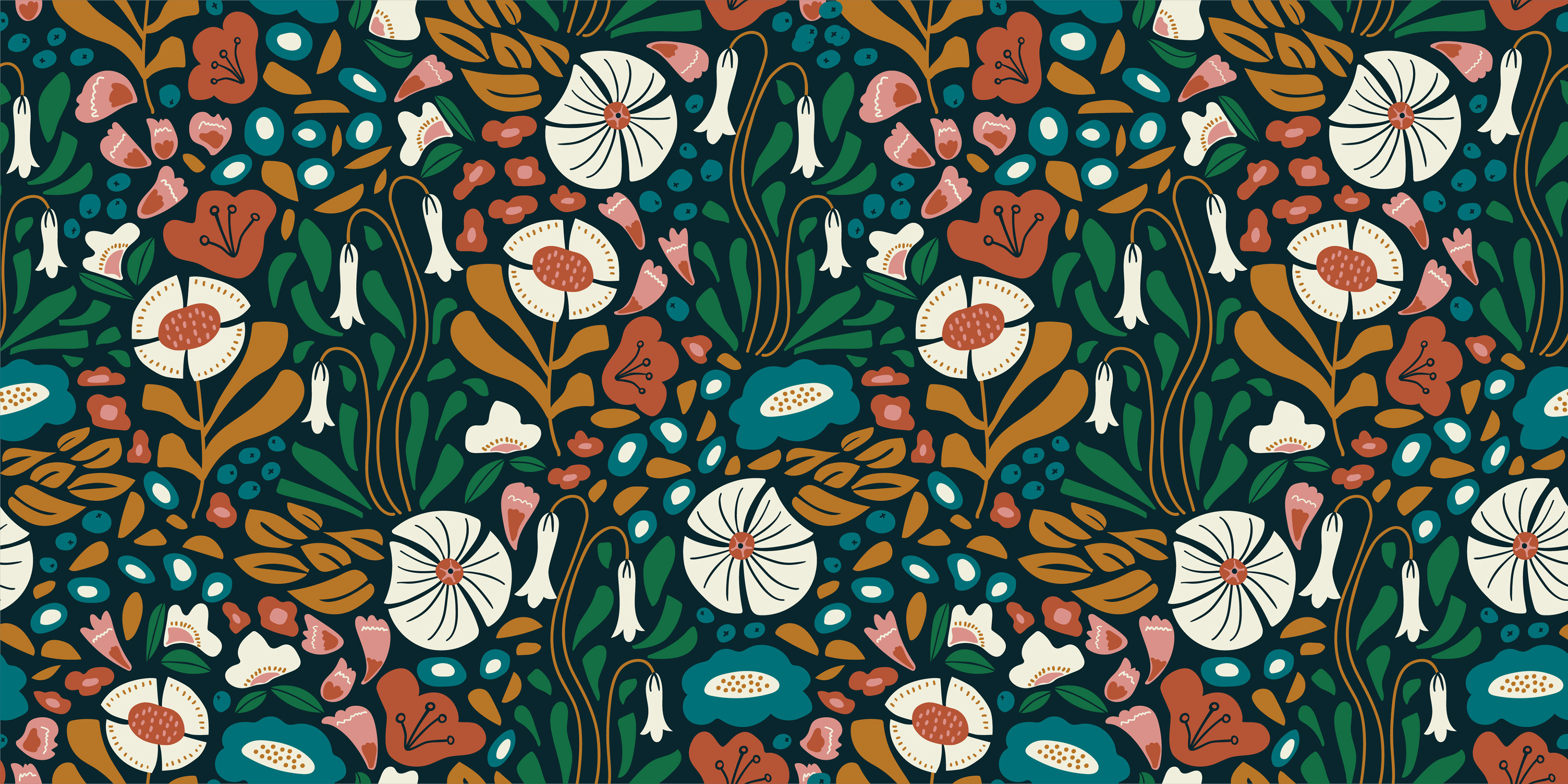 Floral print & pattern collection inspired by 1970s textile design on fabric and a variety of mockups.
