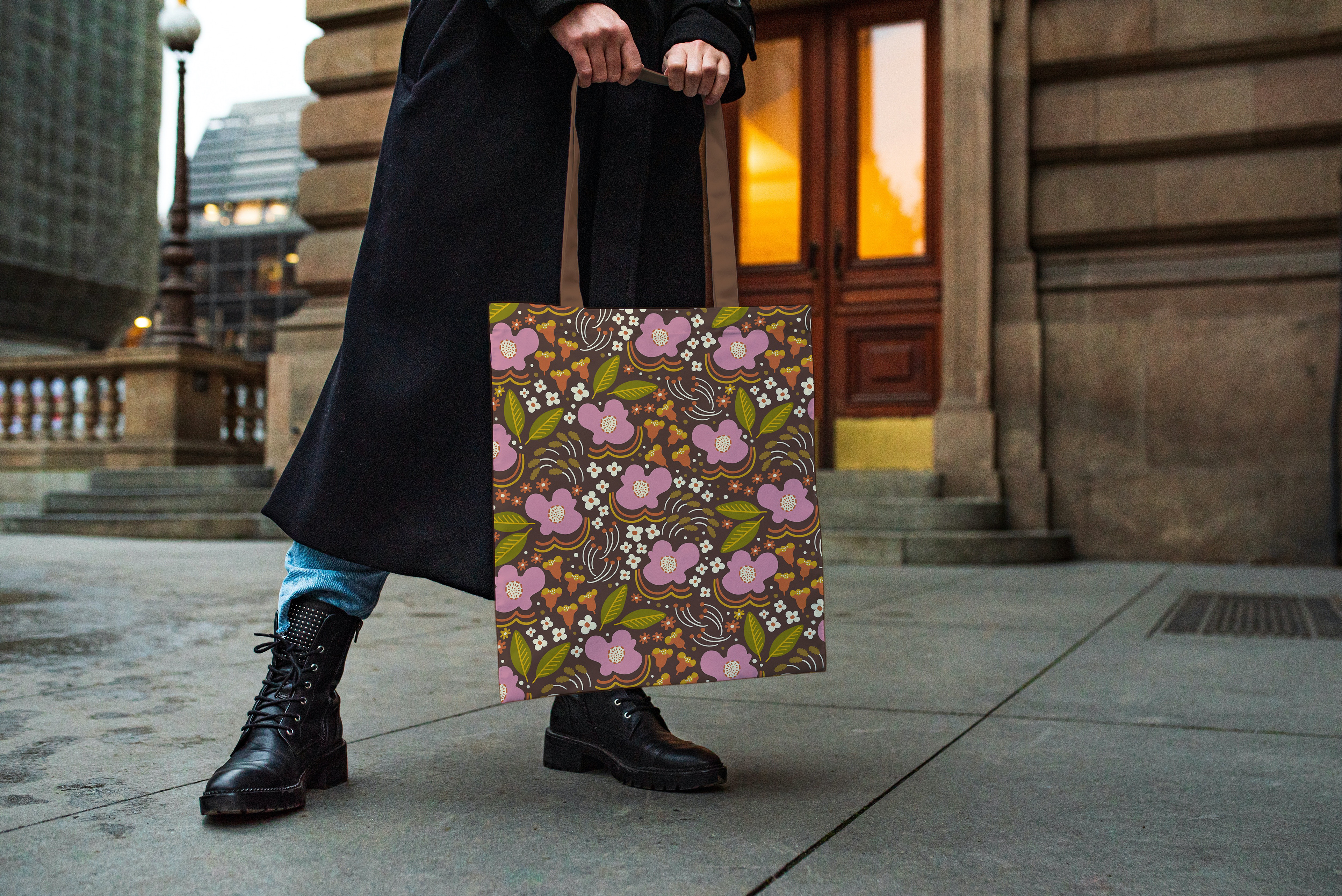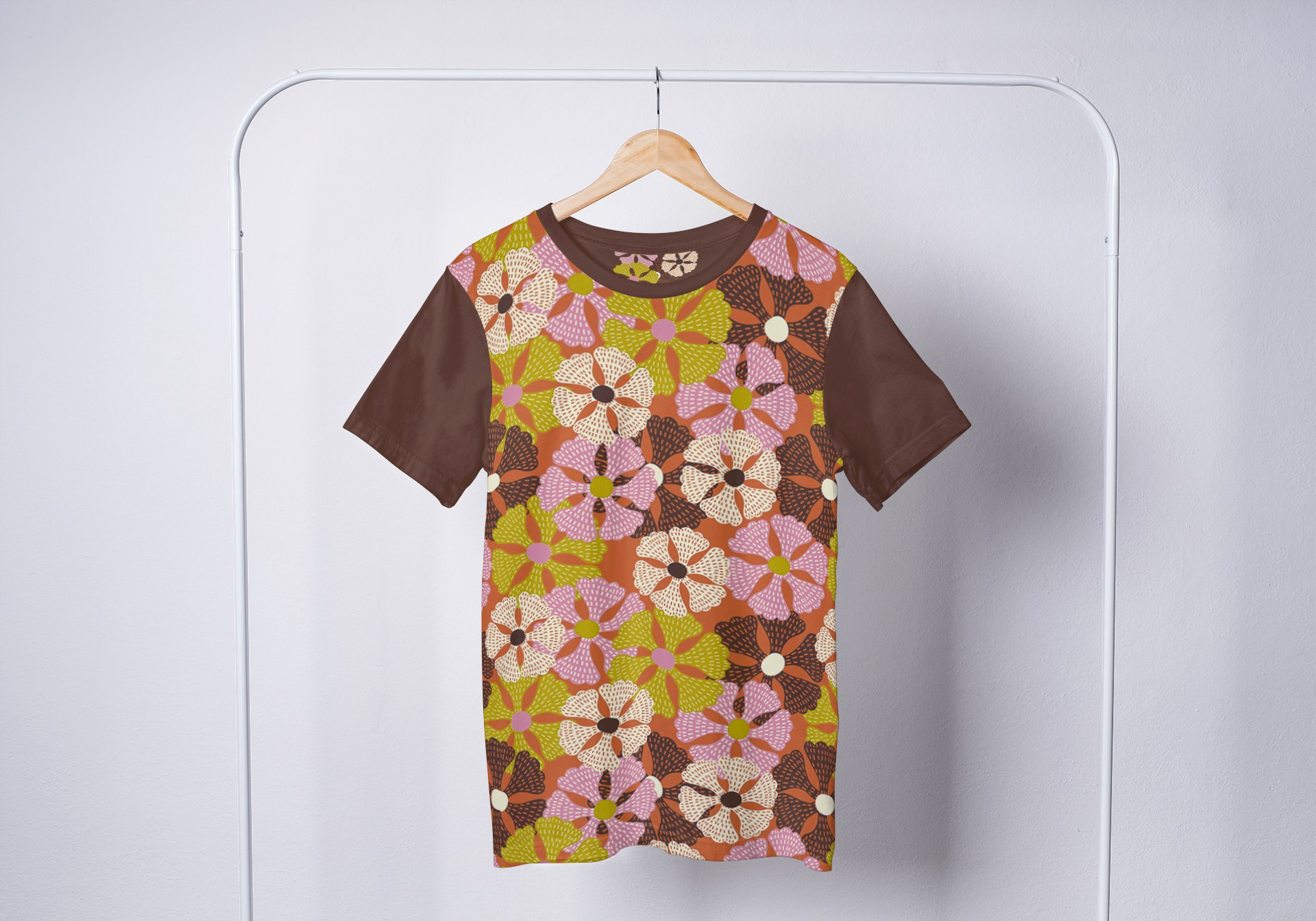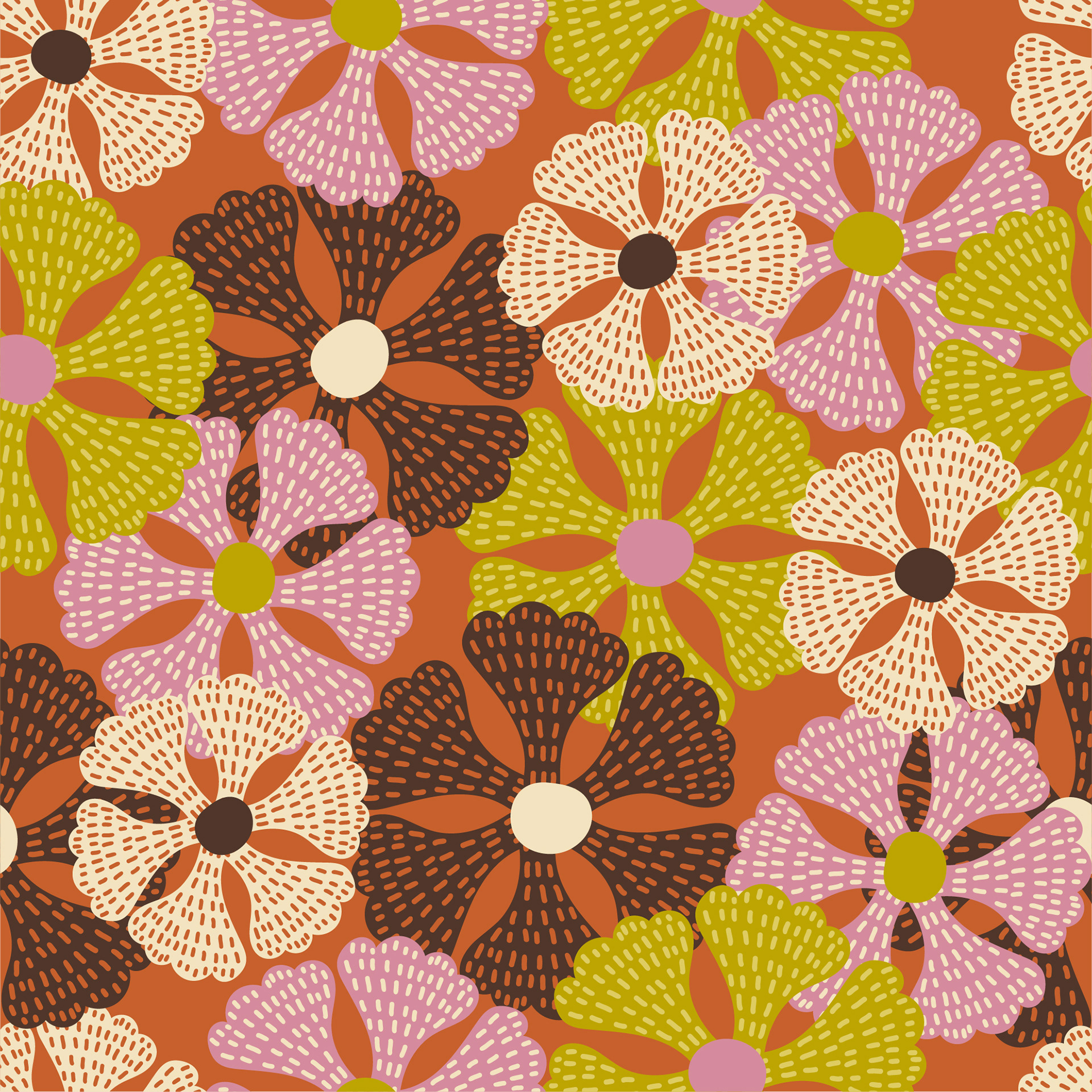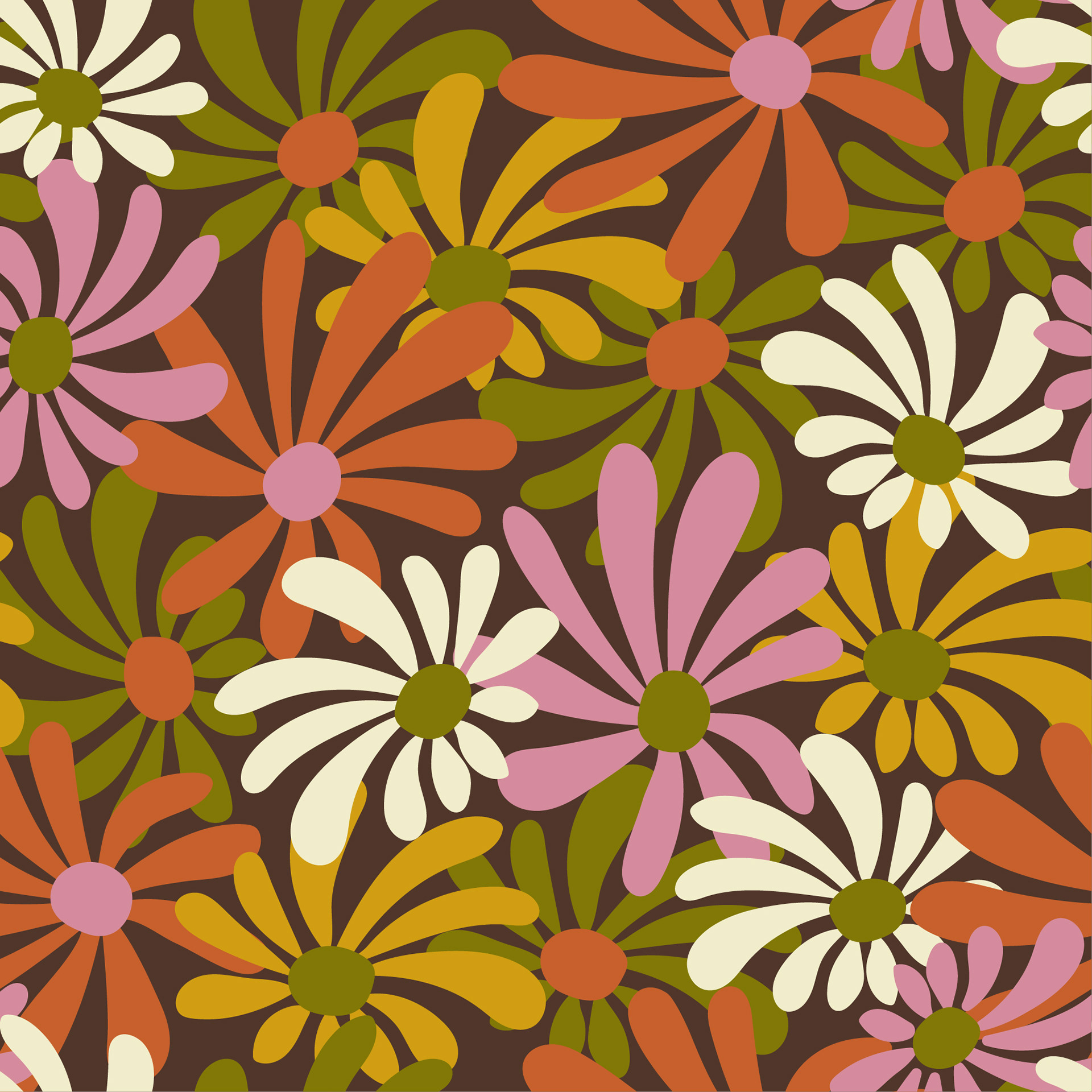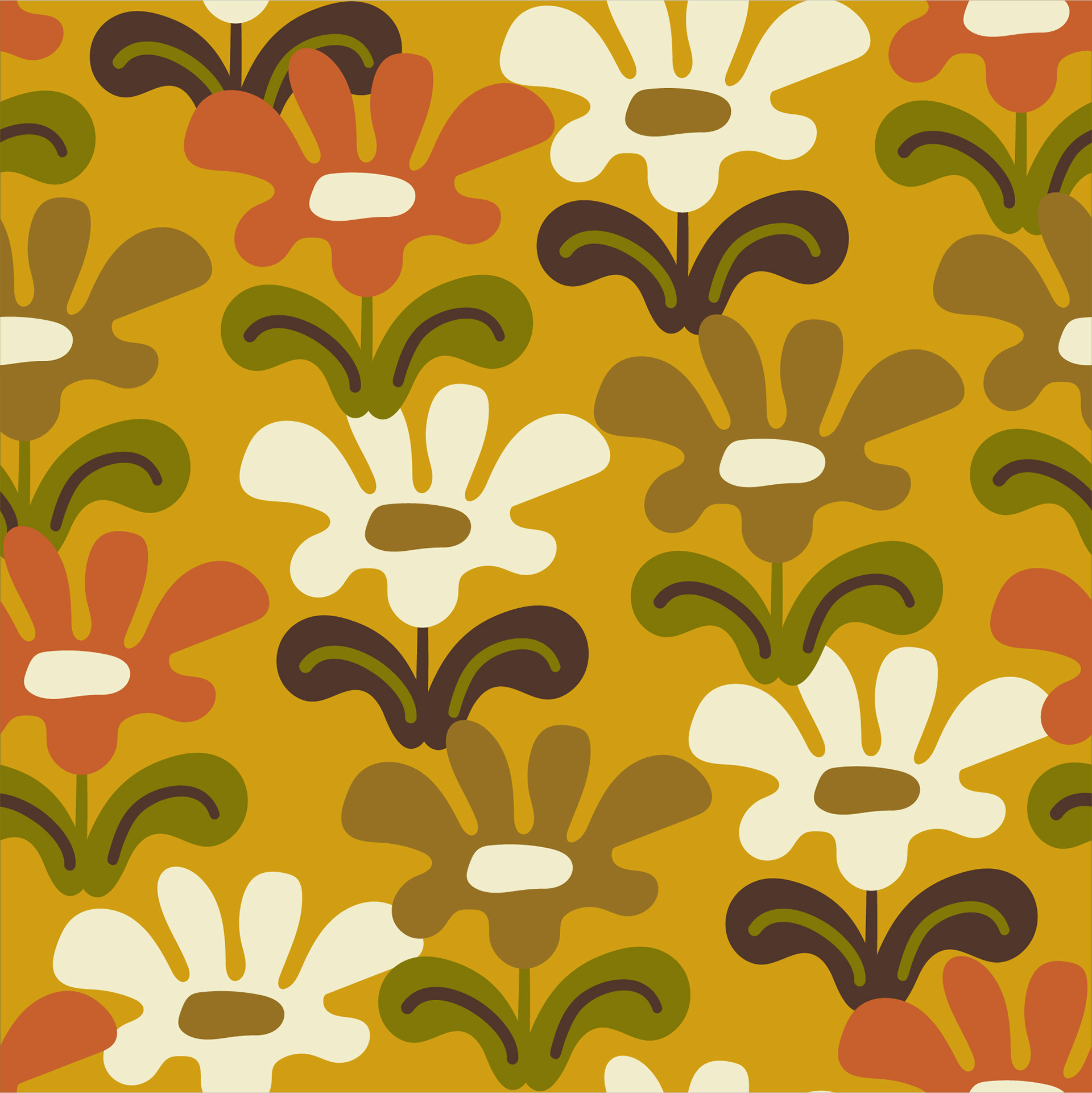 A collection of 60s inspired seamless patterns presented on a variety of mockups.
