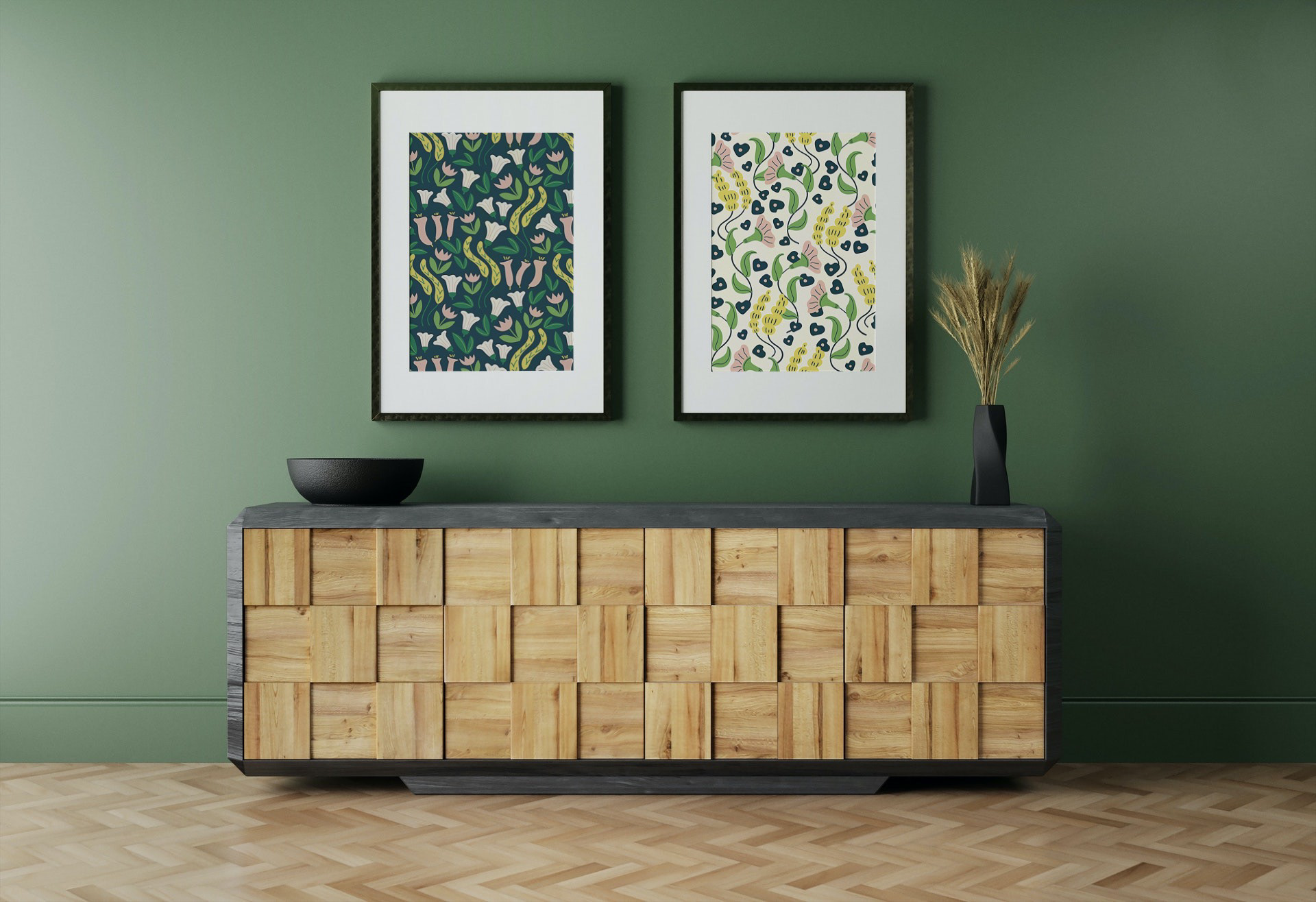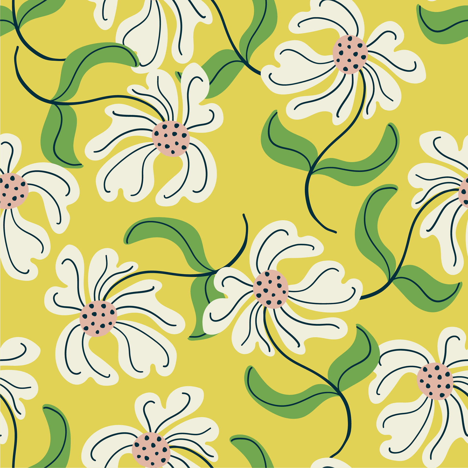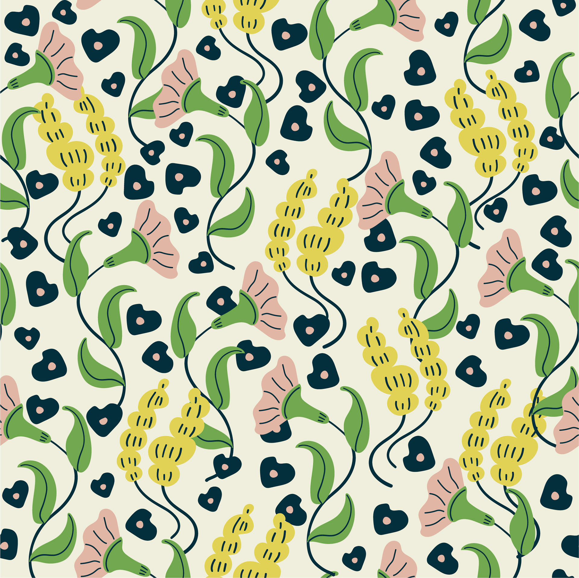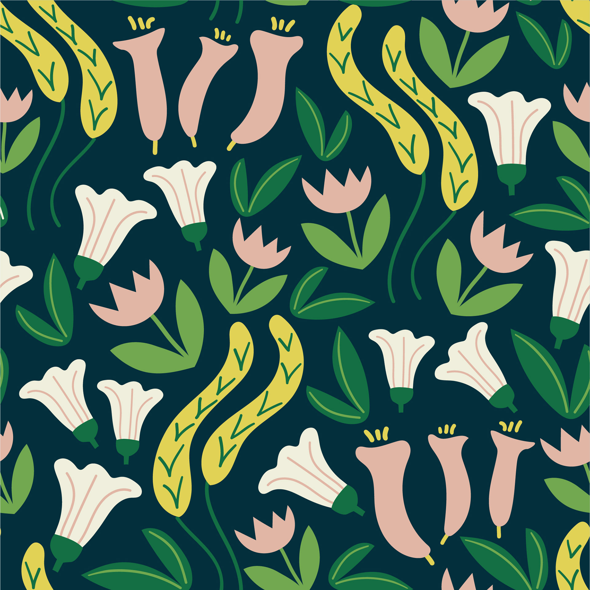 A collection of floral print & patterns using a fresh summery palette of soft peach, greens and lemon. Each design is versatile and works well on various product mockups.