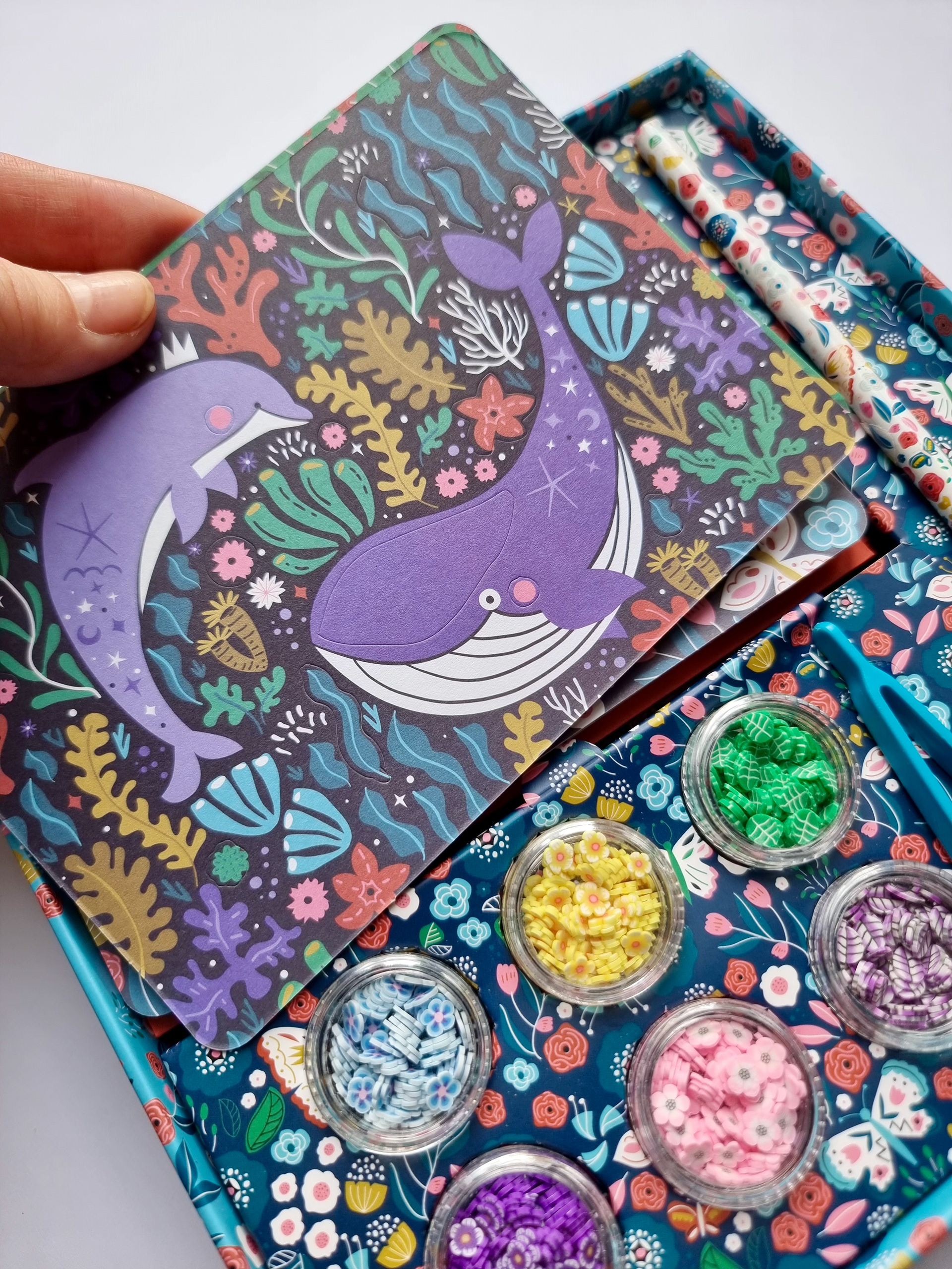 This magical woodland box set contains 10 uniquely illustrated cards that use a cane painting technique to customise the designs with a selection of delicate flower sequence.